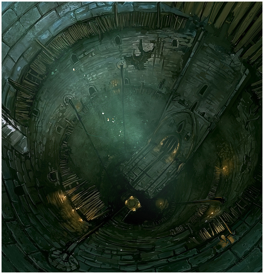 Adımları onu kaçınılmaz olarak kuyuya doğru götürdü. Her yer kapkaraydı ve ilk başta göremedi. Ama bir parıltı daha geldi ve tuhaf bir şey gördü: