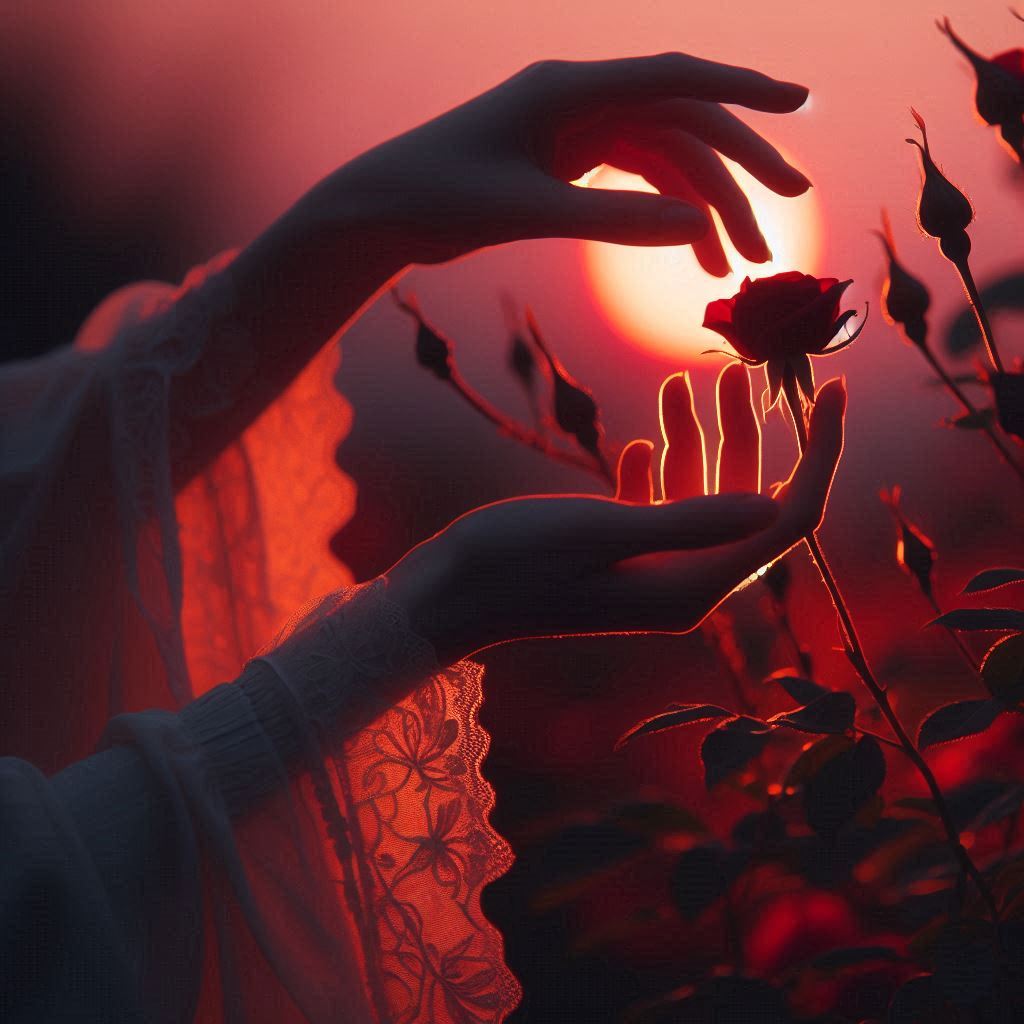 Bir gülü koparmaya uzanır tan kızıllığında