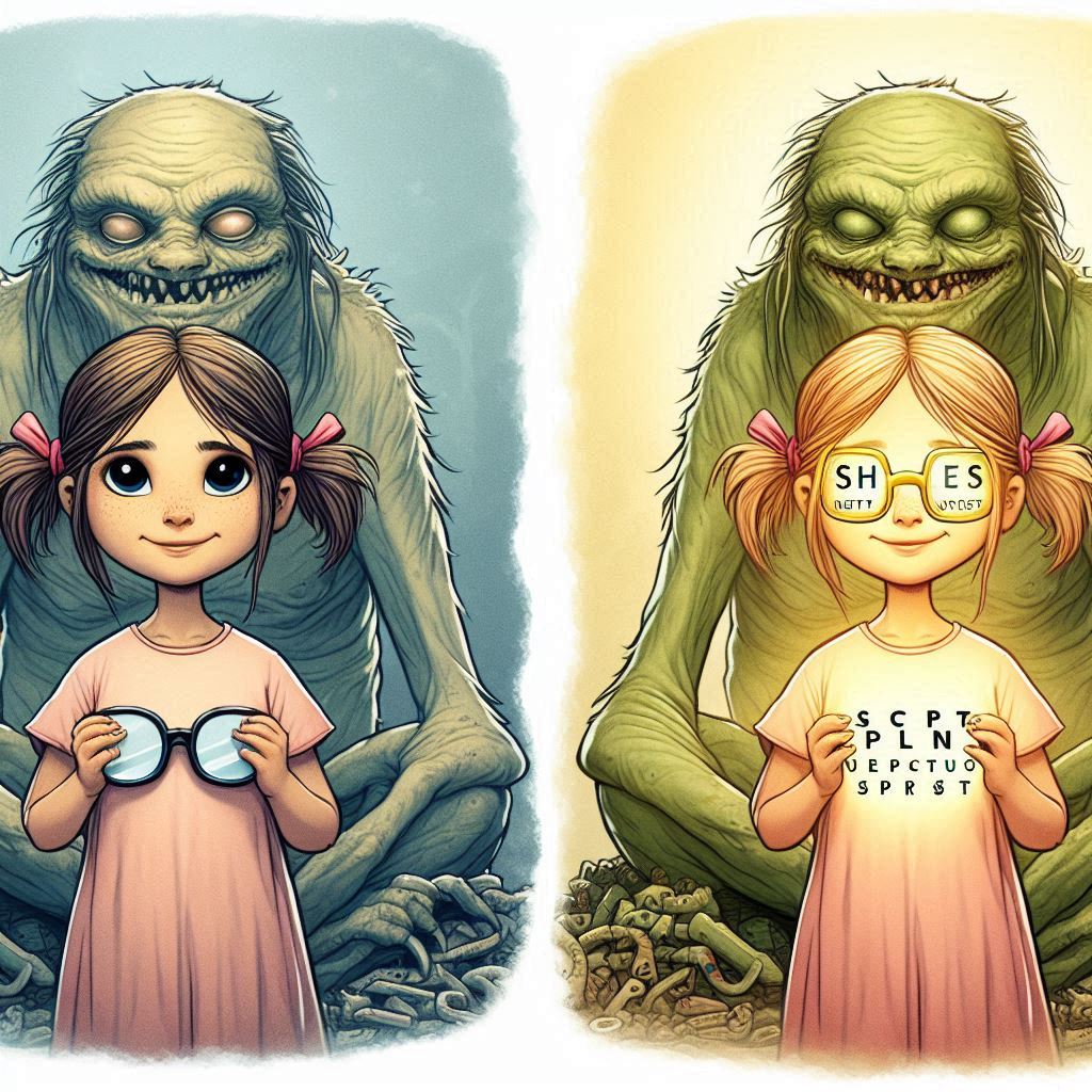 Kıza çıkarıp bir gözlük vermiş ve harfleri hala karmakarışık görüp görmediğini sormuş.