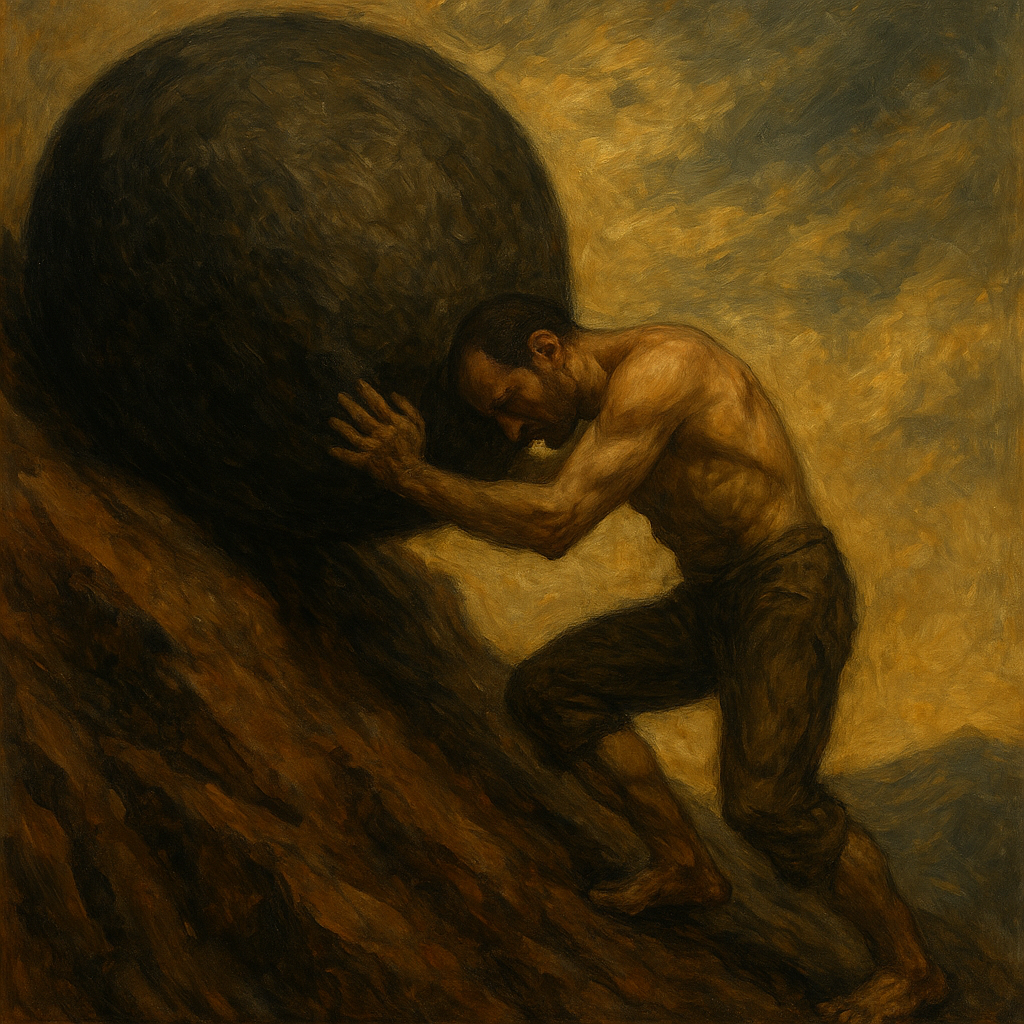 Camus’nün bu fikri için sunduğu örnek, Sisifos Söyleni kitabındaki bir Yunan miti karakteri olan Sisifos’tur. Sisifos, Yunan mitolojisinde Korinthos kralıdır. Çok zeki ama aynı zamanda kurnaz, hilebaz ve tanrılara karşı bile oyun oynamaktan çekinmeyen biridir. Ölüm Tanrısı’na bile kafa tutar Sisifos. Sonrasında tanrılar onu cezalandırır: Artık Sisifos, kocaman bir kayayı dağın tepesine doğru yuvarlayacak ve o kaya her defasında aşağıya düşecektir. Bu bitmeyen, anlamsız bir uğraştır; tıpkı hayat gibi.